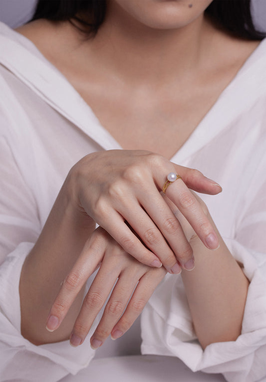 Athena Freshwater Pearl 18K Gold Vermeil Twisted Band Ring