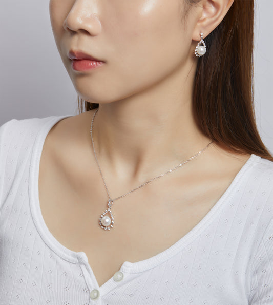 Charlotte Freshwater Pearl Necklace with Sterling Silver Logo Pendant