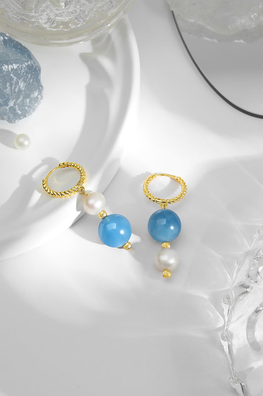 Tide Aquamarine and Pearl 9K Earrings