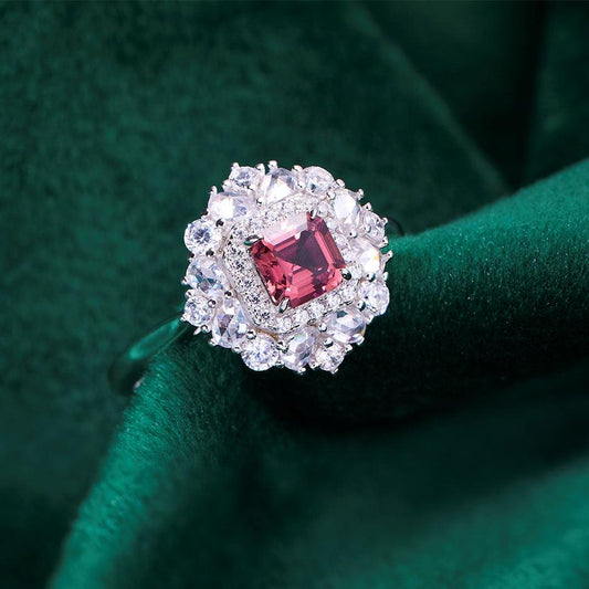Sold outRadiant Tourmaline Halo Ring Fuchsia